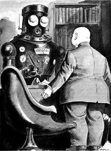 The robot's eyes, large disks of glittering mirror, flashed as he looked up. "Ah, Colonel James," Boris said in a voice that seemed to come from a deep well. "Excuse the poor welcome, but I understand we have little time. You scared my valet; he thought you were Gospodin Pashkov."