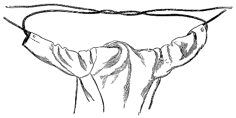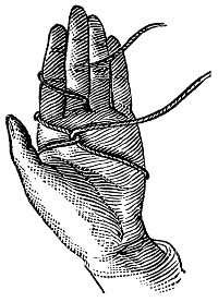 Hold a ring between thumb and forefinger at some distance from the boy addressed, and giving him a crooked stick, ask him to close one eye and try to catch the ring on the stick. This game looks so very simple, that any boy is certain he can do it at one thrust, and is only made aware of its difficulties after several unsuccessful attempts.