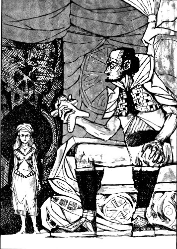 Nestir, the priest, was dressed out in the full ceremonial costume of office. His high, strapless boots glistened with polish. His fez perched jauntily on his shiny, shaven head. The baldness was symbolic of diligent mental application to abstruse points of doctrine. Cotian exentiati pablum re overum est: "Grass grows not in the middle of a busy thoroughfare." The baldness was the result of the diligent application of an effective depilatory. His blood-red cloak had been freshly cleaned for the occasion, and it rustled around him in silky sibilants.
