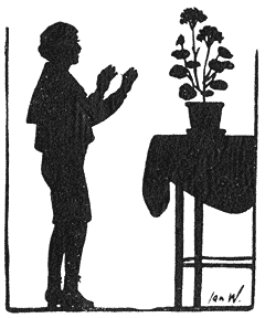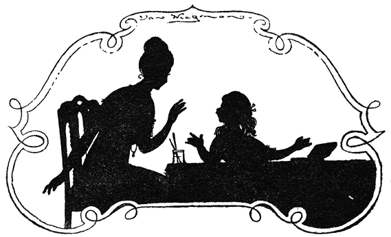 „Zal je ’t versje niet vergeten, kind?—Ik zal je nu iemand meegeven, om je thuis te brengen, want als de zon daalt, ziet het er buiten heel anders uit, dan wanneer zij met haar vriendelijk licht alles verheldert en doordringt.”
