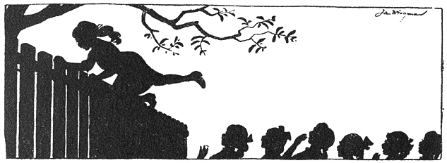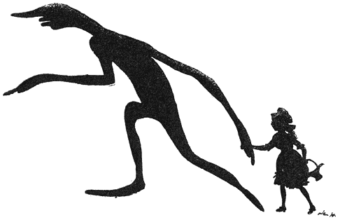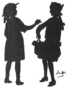 Ja—Schaduw deed ’t, de trouwe dienaar van de goede fee. Gella zag hem niet en liep onverstoord door—nu op een drafje, want ze kreeg op eens erg verlangen naar huis en naar Moeder.—
