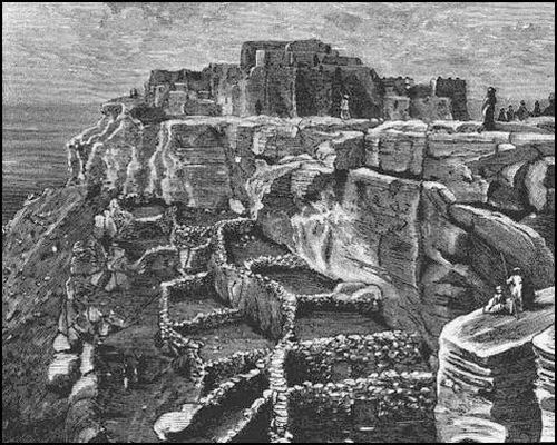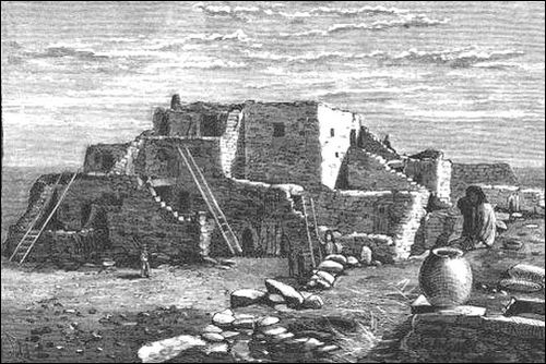 The attraction which drew the conquerors of Mexico forty-five days' journey away into the North was the fame which had reached them of the Seven Cities of Cibola (the buffalo), great in wealth and population, lying in the valley of the Rio de Zuñi. To the grief of the invaders, they found not cities, but rather villages of peaceful agricultural people dwelling in great pueblos three and four stories high, and they searched in vain for the rumored stores of gold. At that time the pueblos held a large population skilled in many arts of civilization. They cultivated large tracts of ground, wove fabrics of cotton and produced ornate pottery. Their stone-masonry was admirable. But even three hundred years ago it seems that the people were but a remnant of what they had once been. Even then the conquerors wondered at the many ruins which indicated a decline from former greatness. The people have not now the same degree of skill in their native arts which the race once had, and it is probable that when the Spaniards came and found them declining in numbers the old handicrafts were already on the wane.