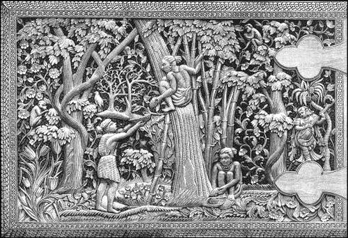It is merely thrown out as a suggestion by the way, and without any intention of belittling the importance of studying the superstitions and philosophies of the world or of aiming at something more than a strictly industrial view of industrial art, that so much attention may be bestowed upon religions as the sources of ideas as to obscure the form and manner of their expression in art. Possibly the formation of an Indian museum at South Kensington may be productive of a longing desire to become acquainted with Rama and the lovely Sita, the strong Arjuna and the beauteous Draupadi; but it is hardly likely that this was the object of its formation or that it will lead to the acquisition of any more abstruse knowledge than such as comprises the weaving of rich textures, the blending of gay colors, or the industrial arts of damascening, carving and working in gold and silver and precious stones. In what has here to be said, at all events, only such references will be made to religion and legend as are absolutely necessary to a general understanding of the conditions under which Indian art has developed, and of the forms under which it is most frequently seen.