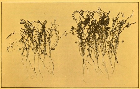 Jedoch sei darauf hingewiesen, dass bestimmte Arten von Bakterien durch die Wurzelhaare oder Verletzungen in die Wurzeln hineindringen, sich stark vermehren und ein neues Pflanzengewebe hervorbringen, welches sich in knollenartigen Verdickungen zeigt. Die Wirkung dieser kleinen Knollen fängt erst dann an, wenn die auflösbaren Stickstoffverbindungen aus dem Boden verbraucht sind.
