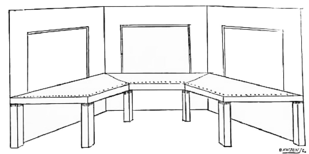 Doubtless the great thing that strikes us when we are house-hunting is that if women architects could get employment houses would be far better planned than they are now. In each bedroom, it seems to me, that I have inspected—and their name is legion—the male mind that designed the rooms never took into consideration that a bed should not stand between the windows and the door; which, by the way, is always put so that the moment it opens the occupant of the bed has a full view of the passage or landing; he has given us no recesses in which we can put shelves, and by a judicious curtain arrangement do away with the necessity of buying large and expensive wardrobes; he puts the fireplaces where, if we are ill, we could not possibly enjoy ourselves with sitting over the fire and warming ourselves; and he gives us far too many windows as a rule, and almost ruins us in blinds and curtains, to prevent the neighbours from gazing at us when we are dressing.
