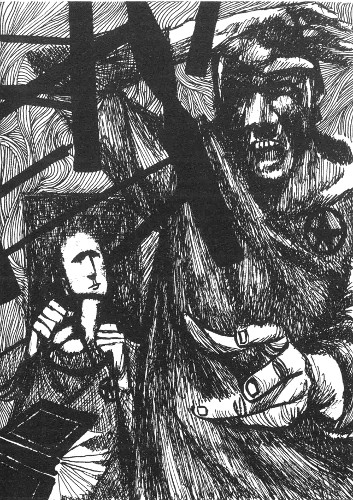 In the litter of books and cards and dried out ink pads that surrounded the librarian, Fownes noticed a torn dust jacket with a curious illustration. "What's that?" he said.
