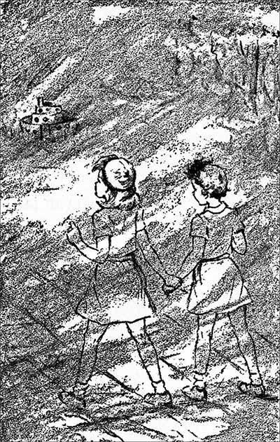 Spluttering and choking, Vevi clawed at the sand. For a second she could not get her breath and was very frightened. She was afraid she might drown.