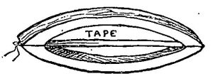 "Now, ladies and gentlemen," said Charley Sparks, "I will give you an imitation of Mr. Punch, of the great English Punch and Judy troupe," and he produced from his pocket a little instrument like this (see Fig. 2). It was made of two pieces of pine-wood, with a piece of tape stretched between them, the whole being bound together with thread wound round and round. This he placed in the back part of the mouth, near the opening of the throat, at a very great risk of choking himself, and forthwith issued from his mouth the funny "Root-a-toot-a-too" of Mr. Punch.