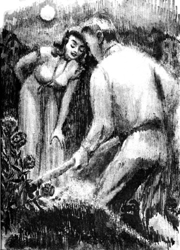That night, by the eerie light of the waning moon, I went at it with Uncle John's pick and shovel and buried the old witch's body next to Aunt Belle's rose bushes by the garage. My bright, new-incarnation girl lounged around and chatted sociably. Everything still had quite a dreamlike quality; the corpse was a final, nightmare touch. But even so, I was beginning to wonder a bit about things; such things as, specifically, where we went from there.