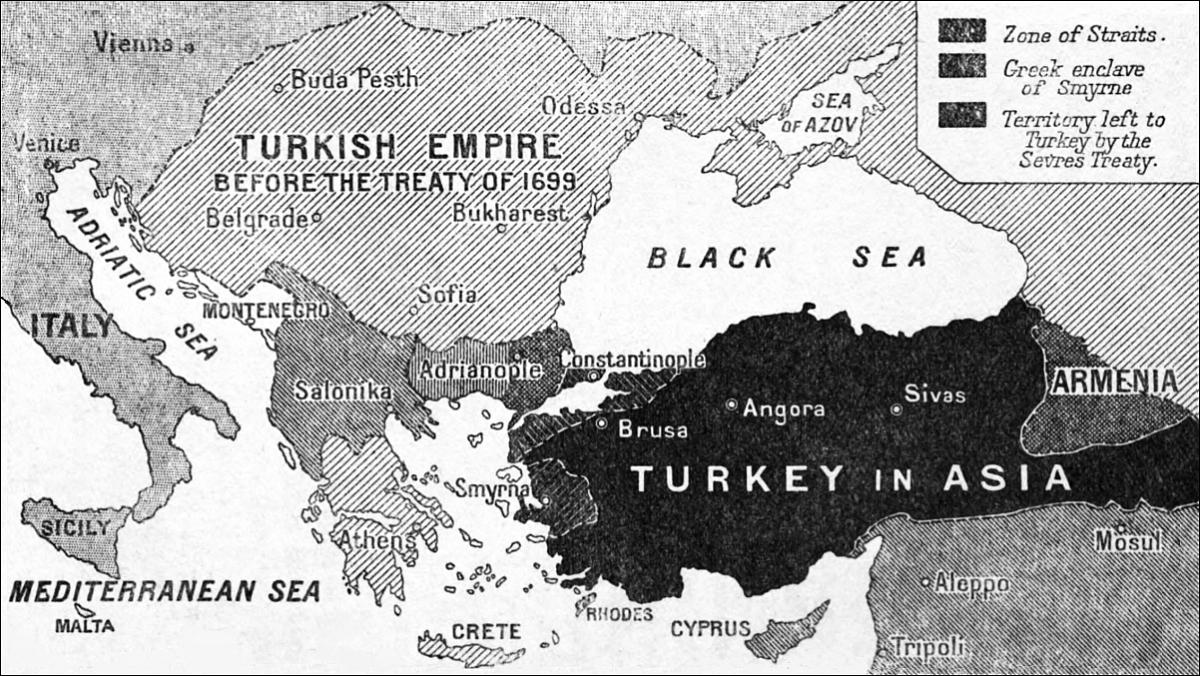 Mustafa Kemal’s Protest—Protests of Ahmed Riza and Galib Kemaly—Protest of the Indian Caliphate Delegation—Survey of the Treaty—The Turkish Press and the Treaty—Jafer Tayar at Adrianople—Operations of the Government Forces against the Nationalists—French Armistice in Cilicia—Mustafa Kemal’s Operations—Greek Operations in Asia Minor—The Ottoman Delegation’s Observations at the Peace Conference—The Allies’ Answer—Greek Operations in Thrace—The Ottoman Government decides to sign the Treaty—Italo-Greek Incident, and Protests of Armenia, Yugo-Slavia, and King Hussein—Signature of the Treaty |
