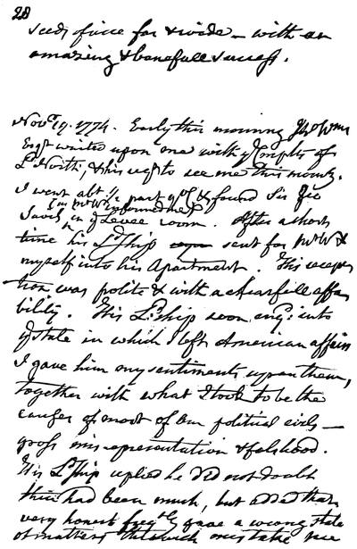 [1501] George Rogers Clark's own narratives furnish the most authentic information concerning his Illinois campaigns, three of which are accessible in print, as follow in the order of their dates: (1) Letter to the governor of Virginia, dated Kaskaskia, April 29, 1779, concerning his capture of Vincennes (in Jefferson's Writings, i. 222-226). (2) Letter to George Mason, dated Louisville, Falls of Ohio, November 19, 1779, which covers the period from setting out on his second visit to Virginia, in the autumn of 1777, to the end of his Vincennes campaign. It is printed from the original MS. in the Collections of the Hist. Soc. of Kentucky, with an introduction by Henry Pirtle; a biographical sketch of Clark; and the journal of Capt. (later Major) Joseph Bowman in the expedition against Vincennes. It is one of the Ohio Valley Series, Cincinnati, 1869, and is here quoted as Clark's Campaign. (3) "Memoirs composed by himself at the united desire of Presidents Jefferson and Madison", printed (with omissions and interpolations) in Dillon's Indiana (1843, pp. 127-184; and 2d ed., 1859, pp. 114-170). The second edition is here quoted. H. W. Beckwith used extracts from the same in his Historic Notes on the Northwest, pp. 245-259. It is the most extended of the three narratives. The original, with a large mass of other MSS. of, and relating to, Geo. Rogers Clark, is in the possession of Dr. Lyman C. Draper, of Madison, Wis. The date when it was written is not given; but it must have been written more than twelve years after the events occurred which it describes. Jefferson, writing March 7, 1791, to Col. James Innes, concerning Col. Clark, said: "We are made to hope he is engaged in writing the accounts of his expeditions north of the Ohio. They will be valuable morsels of history, and will justify to the world those who have told them how great he was" (Writings, iii. 218). Mann Butler's account of Clark's exploits (Hist. of Kentucky, pp. 35-88) is highly seasoned with popular traditions, and with incidents which are not consistent with Clark's own statements; and yet Butler has been more frequently quoted than the narratives of Clark. (4) The Canadian Archives, at Ottawa, has a journal of Clark, dated Vincennes, Feb. 24, 1779, the day of the surrender, which has never been printed nor quoted. (See report of Douglas Brymner, archivist, for 1882, p. 27, where an abstract of the report is given.) This is Clark's original report on his Vincennes campaign to the governor of Virginia. Three days after the surrender, a messenger arrived at Vincennes with despatches from the governor. On the 14th of March this messenger (whom Clark calls William Myres; Bowman, Mires; the Canadian Calendar, Moires; and Jefferson, Morris) was sent back to Williamsburg with letters to the governor. Near the Falls of the Ohio he was killed by the Indians, and the report of Clark, with nine other letters captured upon him, appear in the Haldimand Collection in the Canadian Archives. Clark, writing to Jefferson April 29th, mentions that he had heard of the killing of his messenger, "news very disagreeable to me, as I fear many of my letters will fall into the hands of the enemy at Detroit, although some of them, as I learn, were found in the woods, torn to pieces" (Jefferson's Writings, i. 222; see also Dillon, p. 159). Copies of these captured documents I have received from Ottawa. Clark's report is very interesting, and gives details of his interviews with Gov. Hamilton, while negotiating the surrender, which are omitted in his later narratives, and show that he treated Hamilton as if he believed he was responsible for the Indian barbarities inflicted upon the frontier settlers. (5) The report of Gov. Hamilton to Gen. Haldimand, July 6, 1781, which is an extended and detailed narrative of his expedition from Detroit to Vincennes in the autumn and early winter of 1778, of his capture by Clark, and of his long imprisonment in Virginia. He gives many facts and incidents which have not before appeared. He earnestly defends himself against the charges of cruelty made by Clark and the Virginia Assembly; and while admitting that, under instructions of his government, he sent out parties of Indians against the white settlements, he claims that he always gave the savages special instructions to be merciful, and that they obeyed him! This document, which has not been used by any writer, or been accessible until recently, is important, and is about the only statement we have giving the British view of the Vincennes campaign. With sixty other early manuscripts relating to the Northwest, it was kindly furnished to me by Mr. B. F. Stevens, of London, who copied it from the family papers of Lord George Germain. It now appears that it is also in the Haldimand Collection in the British Museum and in the Canadian Archives. It has lately been printed in the Michigan Pioneer Collections, ix. 489-516.