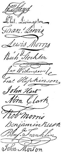| Illustrations: Autographs of the Mecklenburg Committee, 256; Thomas Jefferson, 258; State House, Philadelphia, 259; Original Draft of the Declaration of Independence, 260; Autograph of Thomas Jefferson, 261; Portrait and Autograph of Roger Sherman, 262; Autographs of the Signers of the [v]Declaration of Independence, 263-266; Fac-simile of a Contemporary Broadside of the Declaration, 267; John Dickinson, 268; John Hancock (the Scott picture), 270; (a German picture), 271; Charles Thomson, 272; Fac-simile of a Page of Christopher Marshall's Diary, 273. | |