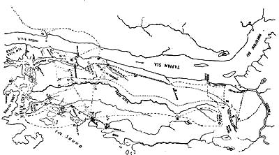 | Illustration: Map of Colonel Williamson's Marches, 675. | |