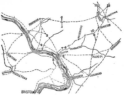 | Illustrations: Autograph of General Richard Prescott, 403; Map, from the Gentleman's Magazine, of the Neighborhood of New York, 404; Joseph Reed, 405; Charles Lee, 406; Marshall's Map of Trenton, Princeton, and Monmouth, 408; Hessian Map of Trenton and Princeton, 409; Faden's Map of Trenton and Princeton, 410; Wiederhold's Map of Trenton, 411; [vi]Wilkinson's Map of Trenton, 412; of Princeton, 413; Hall's Map of the Campaign of 1777, 414; Galloway's Map, 415; General Sir William Howe, 417, 418; Washington's Map of Brandywine, 420; Hessian Map of Brandywine, 422; Hessian Map of Paoli, 423; Faden's Map of Trudruffrin, or Paoli, 424; Approaches to Germantown, 425; Montresor's Map of Germantown Battle, 426-427; Hessian Map of Germantown, 428; View of Stenton, Logan's House, 429; Faden's Map of Operations on the Delaware, 429; Lafayette's Map of the Attack at Gloucester, N. J., 430; Map of Fort Mifflin on Mud Island, 431; Fleury's Plan of Fort Mifflin, 432-433; Attack on Fort Mifflin, 434-435; Plan of Mud Island Fort, 437; Attack on Mud Island, 438; Map of Valley Forge Encampment, 439; Defences of Philadelphia, 440, 441; Vicinity of Philadelphia, 442; Barren Hill, 443; Plan of the Battle of Monmouth, 444; Monmouth and Vicinity, 445. | |