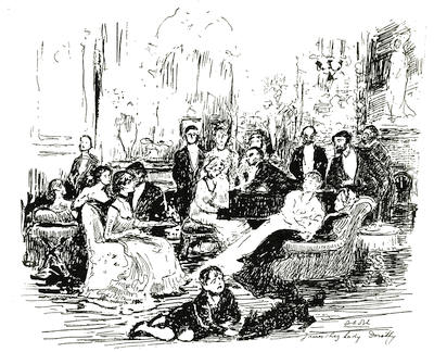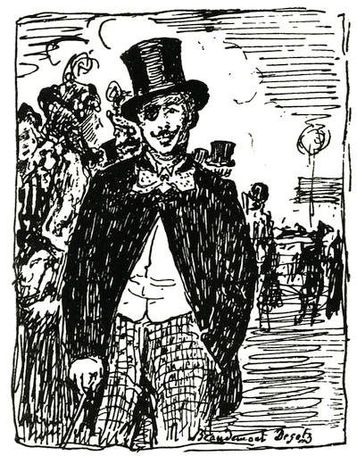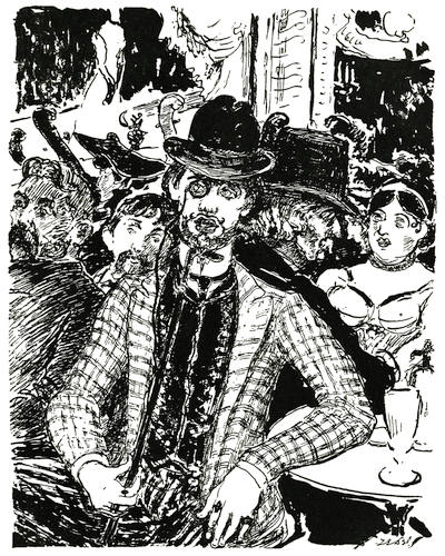 Les illustrations dont s’accompagne cette histoire, je les ai exécutées dans le goût de l’époque de Georges Aymeris; pour l’Angleterre, m’inspirant de Leech, de Charles Keene, de George du Maurier.