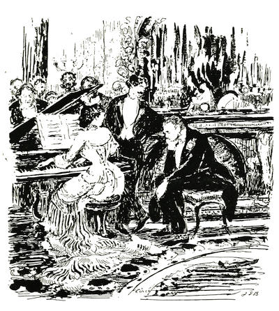 Le Directeur de l’Opéra était absent pendant la répétition craignant les colères célèbres du kappelmeister berlinois qui créaient un malaise parmi les musiciens de l’orchestre, Strauss faisant recommencer vingt fois de suite une demi-page, un trait des violons, insultant un instrumentiste professeur au Conservatoire. Tout d’un coup, Strauss, debout, à son veston la rosette de la Légion d’honneur qu’il venait de recevoir, frappe de son bâton le pupitre, et pâle, en rage, s’écrie:—Il faudrait un sabre allemand pour les faire obéir!