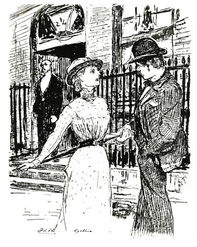 Puis, calmé un peu, Georges tâcha de retrouver son chemin; croyant se rappeler la maison du vieil artiste, il se mit seul en route, Cynthia s’alla promener dans le parc où il la retrouverait ensuite.