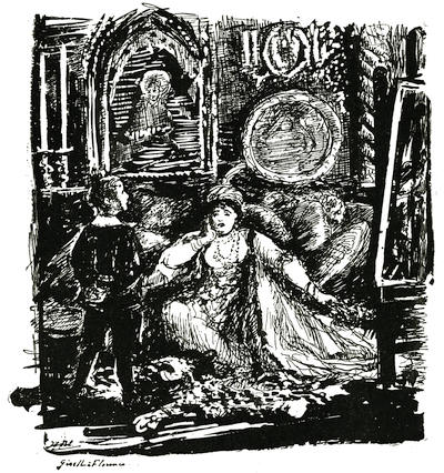 D’anciennes peintures de lui, qu’il aperçut dans l’atelier, lui parurent si mauvaises, qu’il n’aurait pas résisté à la tentation de crever deux toiles, si Cynthia ne l’en eût empêché.