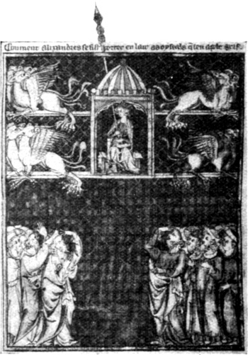 Während des ersten Kreuzzuges wurde zwischen Rodvan und dem Herzog von Lothringen im Jahre 1098 bei Aleppo eine militärische Taubenpost eingerichtet. Die erste vollständig organisierte staatliche Taubenpost richtete Nur-Eddin im Jahre 1171 in Syrien ein. Unser kleines Bild zeigt eine Taubenpost nach einem Holzschnitt des Jahres 1488. Die Darstellung entstand nach den Handschriften einer Reiseerzählung des Johann von Mandeville etwa vom Jahre 1360.