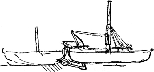 Als man 1835 in Paris eine Europäische Luftschiffahrtsgesellschaft gegründet und mit dem Bau eines großen Luftschiffes begonnen hatte, das den Verkehr zwischen Paris und London aufnehmen sollte, regten sich überall die Erfinder. In Deutschland zog der Nürnberger Mechaniker Leinberger vergebens mit dem Modell seines Dampfluftschiffes herum, um die Mittel zum Bau eines großen Dampfluftschiffs zu erlangen. Wie naiv man damals an die gewaltige[S. 209] Aufgabe der Luftschiffahrt ging, beweist die Anordnung des Schornsteins der Dampfmaschine, der mitten durch die Ballonhülle hindurchführt.