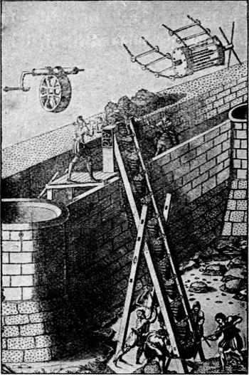 Sobald die französischen Lufballone in den Bereich der englischen Küste kommen, werden sie heftig beschossen. Die Scharfschützen baumeln an den Schwänzen riesiger Luftdrachen, deren Halteseile vom englischen Festland aus dirigiert werden. Aber dennoch nähern sich die französischen Kriegsballone immer mehr der Küste, und der erste Ballon, der sich über den englischen Schiffen befindet, wirft schon eine mächtige Brandbombe aus seiner Gondel herab....