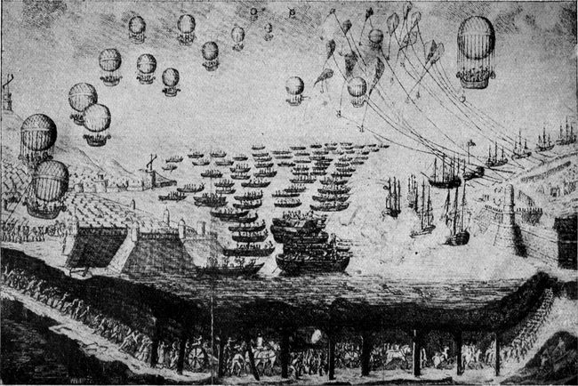 Über eine frühere Beschießung Venedigs aus Luftfahrzeugen befinden sich in den Sammlungen des Wiener Kriegsarchivs Aufzeichnungen von hohem Gegenwartsinteresse, die die Neue Freie Presse mitteilt. Der österreichische Linienhauptmann und Doktor der Philosophie und der freien Künste, Heinrich Hauschka, erzählt in seiner Schrift „Die Belagerung von Malghera und Venedig“ folgendes aus dem Jahre 1849: