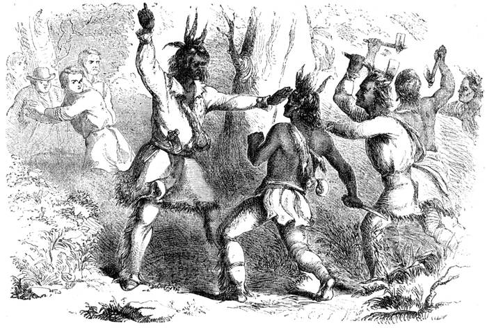 A few days after Brady had left Sandusky with his squaw prisoners, keeping a sharp look-out in expectation of being pursued, and 372taking every precaution to avoid pursuit, such as keeping on the dryest ridges, and walking on logs whenever they suited his course, he found he was followed by Indians. His practised eye would occasionally discover in the distance, an Indian hopping to or from a tree, or other screen, and advancing on his trail. After being satisfied of the fact, he stated it to his men, and told them no Indian could thus pursue him, after the precautions he had taken, without a dog on his track.