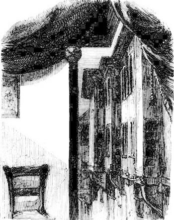 When the procession moved off, the serious business of the drama was resumed; the three females re-entered on the scene, accompanied by their mother, and a Greek serving-man, laden with their parasols and essence-bottles; and followed by two thieves, who concealed themselves behind the Chinese statues, for such I found that the two quaint figures who475 had so quietly walked to their places were intended to represent. After a vast deal of absurd grimace and buffoonery, rugs were spread in front of the low railing, and the four females and the Greek servant seated themselves, to listen to a tale told by the old woman.