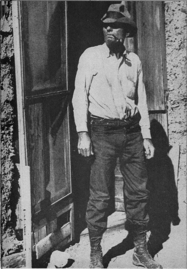 It was Blackie who proved to my satisfaction that money has only a minor relation to happiness. His house was part dobe, part white tufa blocks. On his table was a student’s lamp, a pipe, and can of tobacco. A book held open by a hand axe. Other books were shelved along the wall. He had an incongruous walnut cabinet with leaded glass doors. Inside, a well-filled decanter and a dozen whiskey glasses and a pleasant aroma of bourbon came from a keg covered with a gunny sack and set on a stool in the corner.