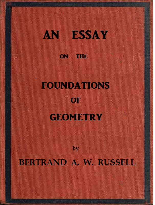 My chief obligation is to Professor Klein. Throughout the first chapter, I have found his "Lectures on non-Euclidean Geometry" an invaluable guide; I have accepted from him the division of Metageometry into three periods, and have found my historical work much lightened by his references to previous writers. In Logic, I have learnt most from Mr Bradley, and next to him, from Sigwart and Dr Bosanquet. On several important points, I have derived useful suggestions from Professor James's "Principles of Psychology."