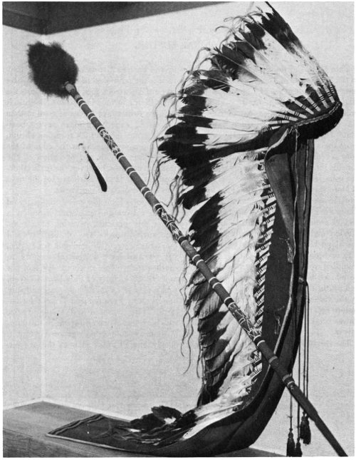 Fig. 4. The war bonnet, war lance, and head feathers of Comanche Chief Quanah Parker can be seen at the Panhandle-Plains Historical Museum in Canyon. (Photograph courtesy Panhandle-Plains Historical Museum.)
