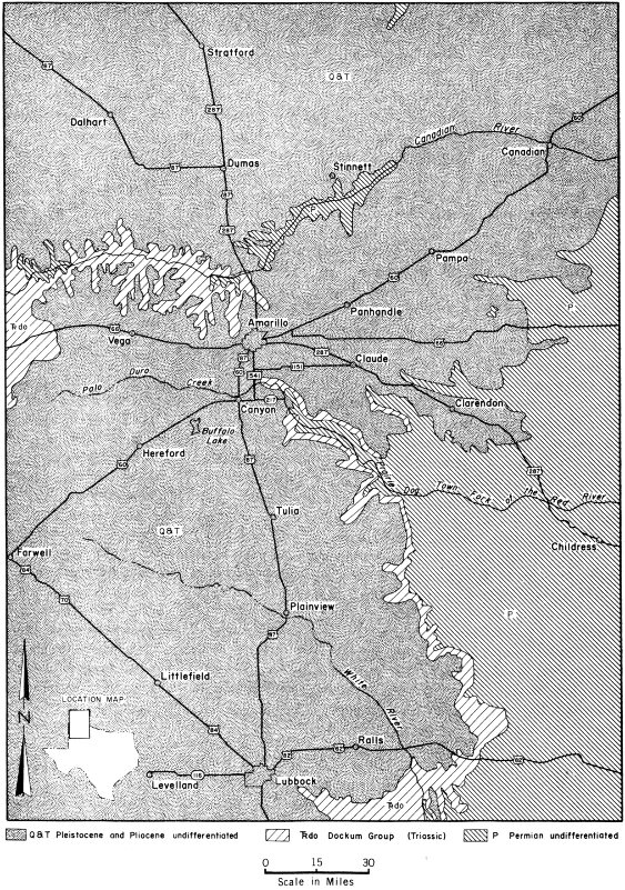 Fig. 5. Generalized geologic map of the Texas Panhandle showing location of Palo Duro Canyon.