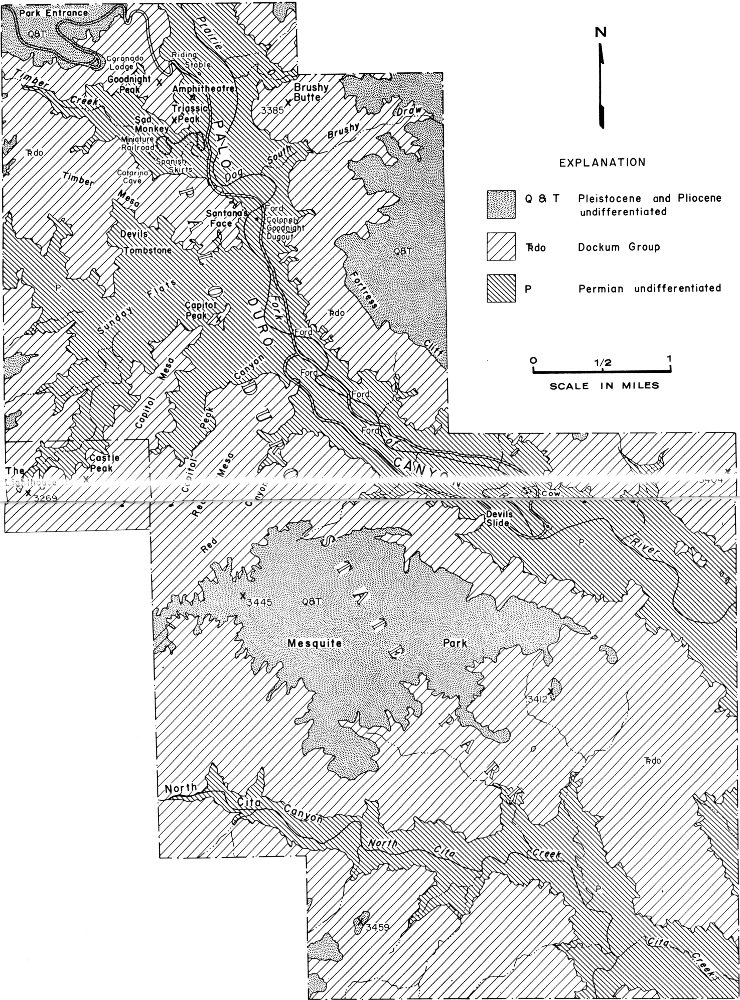 In general, the following descriptions of the formations exposed in Palo Duro Canyon State Park follow the procedure that most geologists use in presenting the results of their geologic investigations. The more distinctive characteristics of the rock units are described in order that they may be more easily recognized, and the ways in which the rocks were formed are also considered. With this background it is then possible to review the geologic history recorded in the bedrock of the canyon. A 17 simplified geologic map is presented in figure 7; this shows the distribution of the major rock types in the canyon. The reader will find it helpful to refer to this map when reading the descriptions of the various formations.