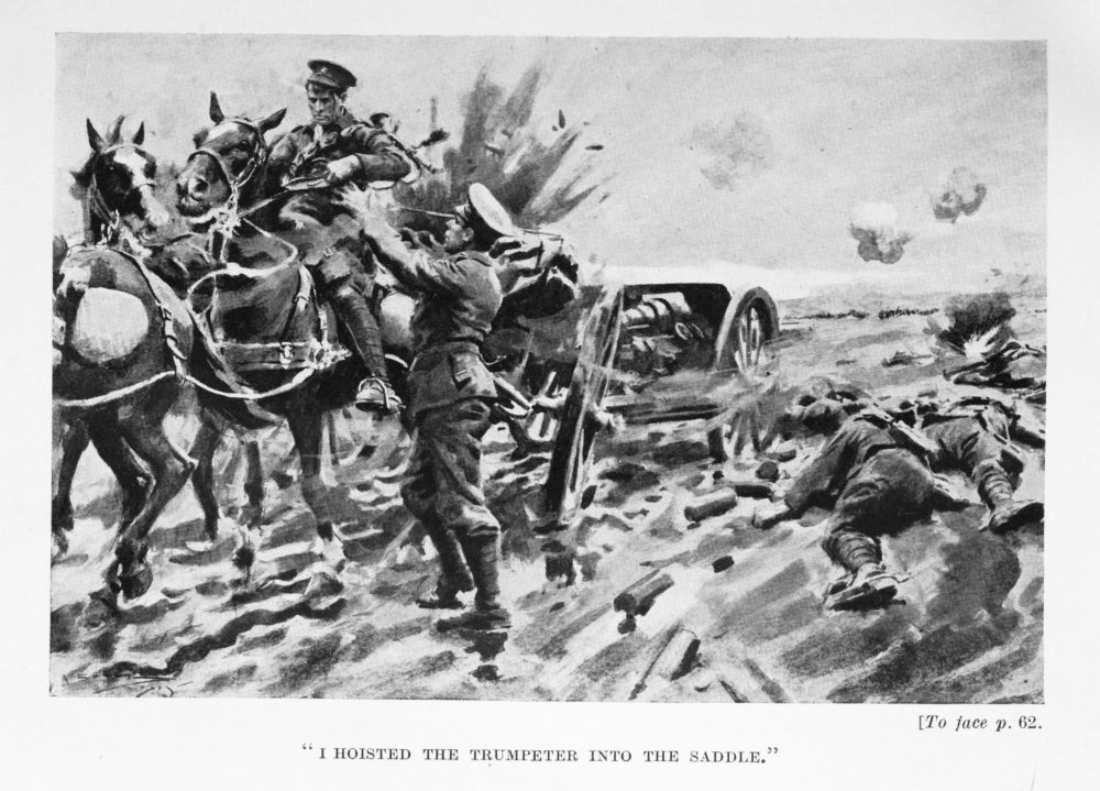 “That’s right!” the men shouted. “The music’s started again! Let’s get at the German pigs!” Not very polite, perhaps, but in this war a good deal has been said on both sides about swine.