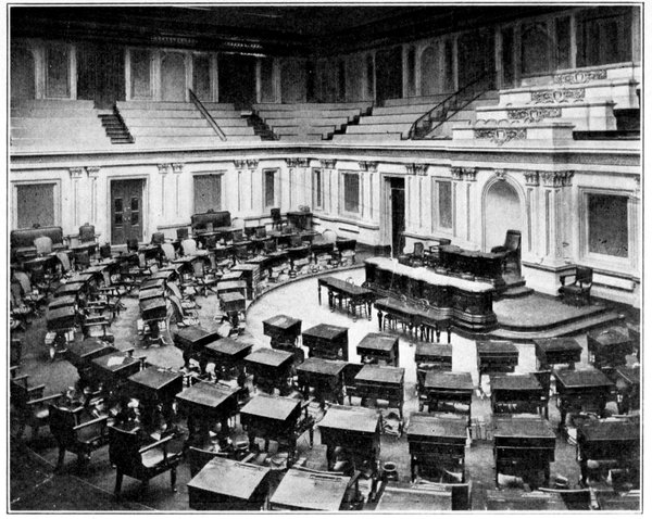 The White House proper contains but thirty-one rooms. The building was refitted and the wings for approach and for the private offices of the President were built during the administration of President Roosevelt. Whether seen through the tracery of leafless trees or through the verdure of summer, the White House always looks cool, restful, and beautiful. The situation is not regarded 167as very healthful, but everything that modern science can do is now being employed to improve its sanitary condition.