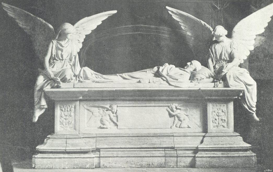 The monument itself is of Carrara marble, designed by Hamo Thornycroft, R.A. It consists of a life-size recumbent figure with watching angels at the head and the feet. With the help of Mr. Watts, R.A., and his knowledge of the original, the sculptor has produced a wonderful likeness, recalling to all who knew him the characteristics of Mr. Stanley’s fine head and impressive features. Mr. Watts, who has himself followed the progress of the memorial for many years with keen interest, considers it one of the finest works of art of modern times.