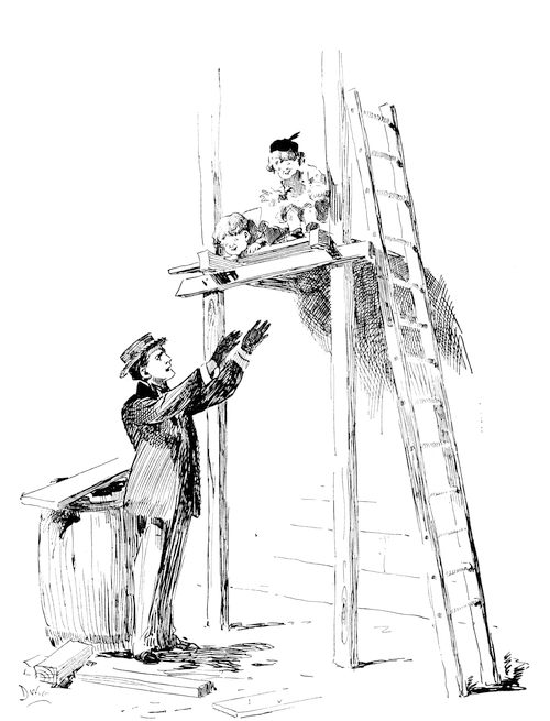 Again Tom hurried to the door, this time with Budge clinging around his neck. As the door opened, Toddie crept in on his hands and knees, exclaiming: