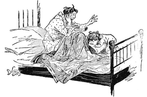 “I can’t get to sleep,” said Budge, shielding his eyes a moment from the light. “I ain’t seen you for so long that I’e got to sit in your lap till some sleep will come to me.”