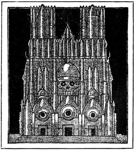 Karikatur auf den Mißbrauch der Reimser Kathedrale. (De Notenkraker.)