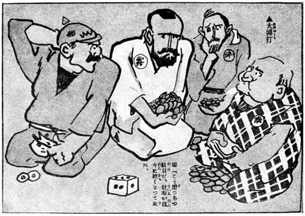 Abb. 3. Japanische Karikatur aus Tokio. (Stellungskrieg Winter 1914.)