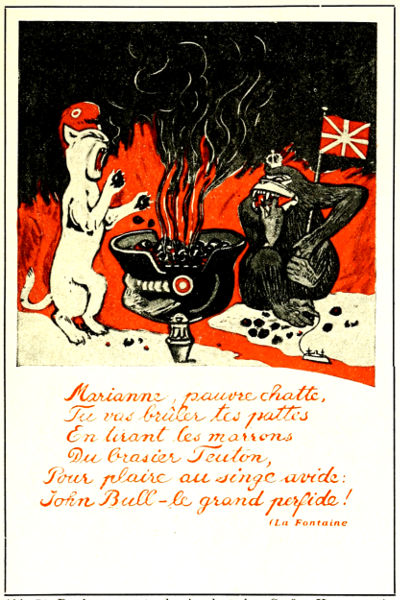 Der Verlag von „Le Rire“ hat zu Weihnachten und Neujahr eine Postkartenserie herausgegeben, um diese an die Soldaten ins Feld zu schicken: (Les Voeux de la France à nos Soldats pour Noël et le Jour de L’An. 12 Cartes Postales en couleurs. Publiées par le Journal Le Rire rouge.) Sie sind verhältnismäßig anständig, teilweise sogar sentimental. Es sind Zeichnungen von Barrère, Delaw, Faivre, Fabiano, Florès, Guillaume, Gerbault, Métivet (Joli cadeau a faire à nos soldats; eine elsässische Puppe mit dem Lorbeerzweig des Siegers), Meunier, Roubile, Vallet, Willette (Les étrennes de Marianne; die französische Republik mit Elsaß und Lothringen an der Hand). Die Karten tragen sämtlich französischen und englischen Text und sind sehr stark anglophil gehalten. Wollte man nun hiernach urteilen, so wäre es mit der angeblichen geheimen Feindschaft der Franzosen gegen die Engländer nicht so schlimm.