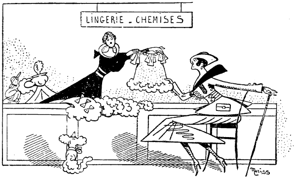 Abb. 101. Der Tapfere. „Madame, Sie haben kein Recht, mich feige zu nennen; wissen Sie nicht, daß die Fliegen (mouches) schädlicher sind als die Boches?“