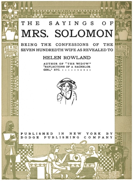 I sigh not for the charms of an houri; and curling hair I shall not crave. Yea, though one husband be all that is granted unto me in this day of Progressive Matrimony, I shall not murmur.