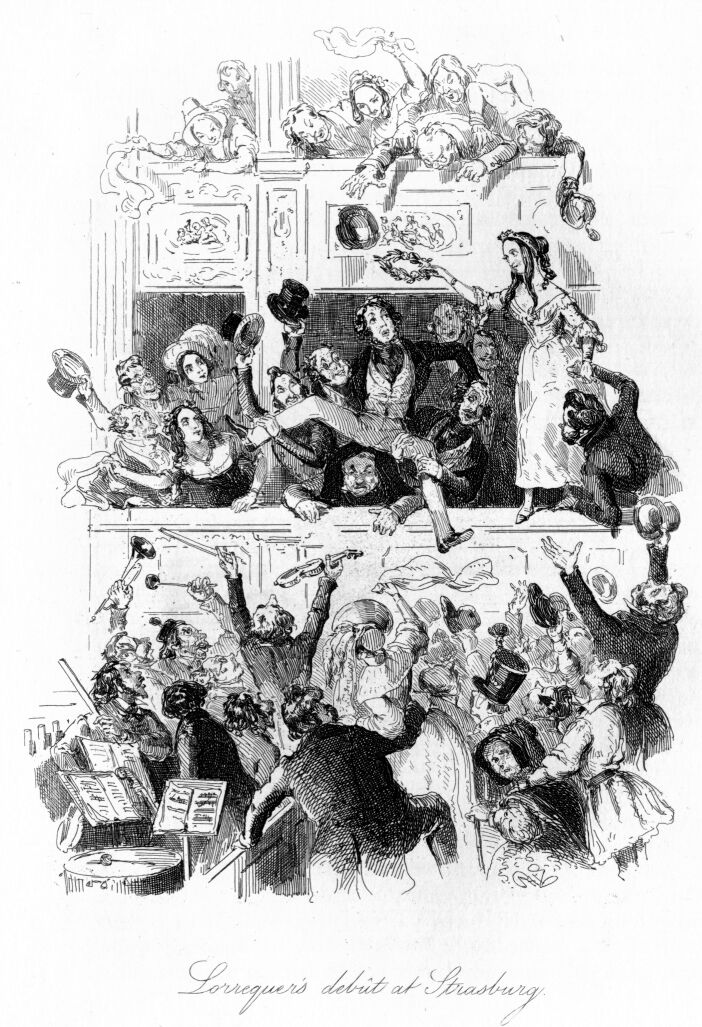 I longed most ardently for the arrival of the diligence, trusting that with true German thrift, by friend might prefer the cheapness of the "interieure" to the magnificence of the "coupe," and that thus I should see no more of him. But in this pleasing hope I was destined to be disappointed, for I was scarcely seated in my place when I found him beside me. The third occupant of this "privileged den," as well as my lamp-light survey of him permitted, afforded nothing to build on as a compensation for the German. He was a tall, lanky, lantern-jawed man, with a hook nose and projecting chin; his hair, which had only been permitted to grow very lately, formed that curve upon his forehead we see in certain old fashioned horse-shoe wigs; his compressed lip and hard features gave the expression of one who had seen a good deal of the world, and didn't think the better of it in consequence. I observed that he listened to the few words we spoke while getting in with some attention, and then, like a person who did not comprehend the language, turned his shoulder towards us, and soon fell asleep. I was now left to the "tender mercies" of my talkative companion, who certainly spared me not. Notwithstanding my vigorous resolves to turn a deaf ear to his narratives, I could not avoid learning that he was the director of music to some German prince—that he had been to Paris to bring out an opera which having, as he said, a "succes pyramidal," he was about to repeat in Strasbourg. He further informed me that a depute from Alsace had obtained for him a government permission to travel with the courier; but that he being "social" withal, and no ways proud, preferred the democracy of the diligence to the solitary grandeur of the caleche, (for which heaven confound him,) and thus became my present companion.