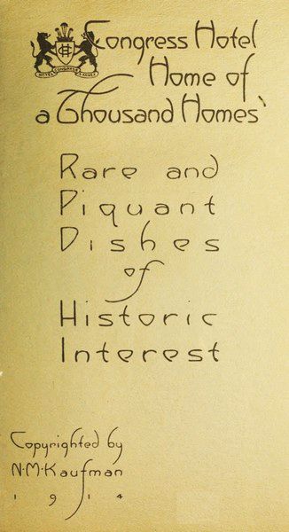 As the smoking Bouillabaise comes from the sanctum of the Congress Chef to your table, it wafts an incense upon which, alone, "man could live and thrive." And its flavor—well if Thackeray could feast with you who knows but that he would be inspired to pen a postlude to his charming roundelay.