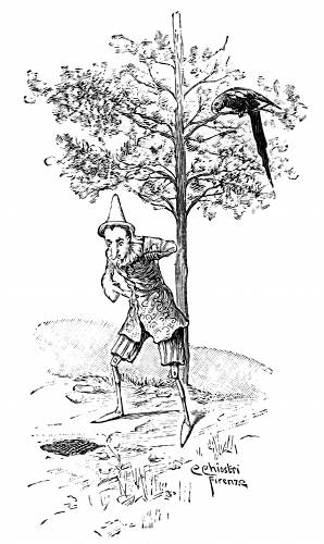 Detto fatto, prese subito l'ascia arrotata per cominciare a levargli la scorza e a digrossarlo; ma quando fu lì per lasciare andare la prima asciata, rimase col braccio sospeso in aria, perchè sentì una vocina sottile sottile, che disse raccomandandosi: