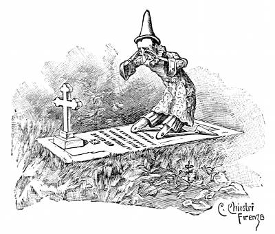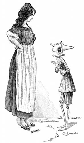 — Bravo Pinocchio! In grazia del tuo buon cuore, io ti perdono tutte le monellerie che hai fatto fino a oggi. I ragazzi che assistono amorosamente i propri genitori nelle loro miserie e nelle loro infermità, meritano sempre gran lode e grande affetto, anche se non possono esser citati come modelli d'ubbidienza e di buona condotta. Metti giudizio per l'avvenire, e sarai felice. —
