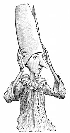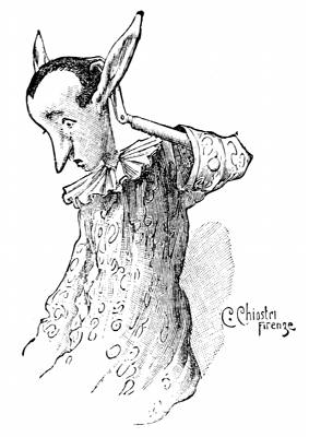 Questa volta maestro Ciliegia restò di stucco, cogli occhi fuori del capo per la paura, colla bocca [8] spalancata e colla lingua giù ciondoloni fino al mento, come un mascherone da fontana.