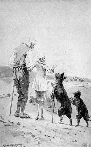 — Ho pensato di fabbricarmi da me un bel burattino di legno: ma un burattino maraviglioso, che sappia ballare, tirar di scherma e fare i salti mortali. Con questo burattino voglio girare il mondo, per buscarmi un tozzo di pane e un bicchier di vino: che ve ne pare?