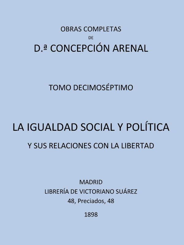 La idea de igualdad supone la de diferencia: si no se hubiesen notado maneras de ser diferentes, no cabía afirmar que las hubiera iguales; no se diría que los hombres lo eran, sino comprendiendo que pueden dejar de serlo. Que los aficionados á los estudios psicológicos, que propenden á ver sucesivos fenómenos que tal vez son simultáneos, discutan si la noción de igualdad ha seguido ó precedido á la de diferencia; á nosotros nos basta hacer constar que si todos fueran, se sintieran y se supieran iguales, no se discutiría acerca de la igualdad, viviríamos[14] sin afirmarla ni negarla, sin notarla; no habría idea de ella, como no existiría la de salud si no se hubieran visto vivientes enfermos ni se concibiera que pudiesen estarlo. Anterior, posterior ó simultánea, negación ó afirmación de semejanzas ó de diferencias, la igualdad y la desigualdad coexisten de tal manera, que no puede concebirse la una sin la otra, y que el estudio de cualquiera de ellas es el estudio de entrambas.